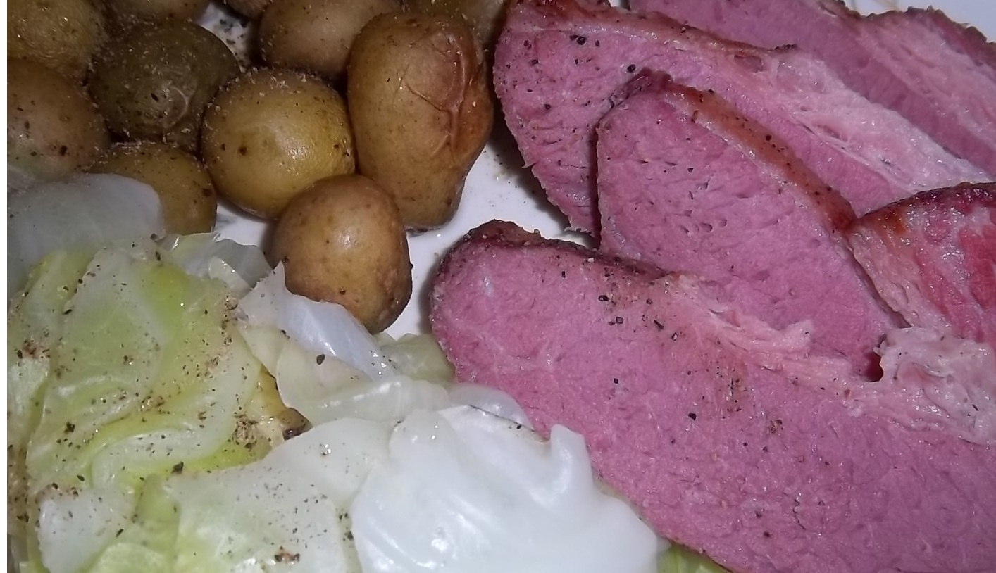 Happy St. Patrick's Day. We are celebrating with corned beef, cabbage, and potatoes. didn't realize until we started eating that I forgot to get some Guinness.